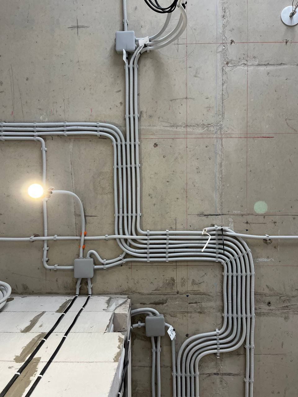 Электромонтажные работы — направлены на подключение потребителей к электросети. В результате их выполнения электроприборы, оборудование, установленные в здании, получают электричество определённой мощности. При электромонтаже важно обеспечить безопасное функционирование электросети здания, что мы и делаем для своих клиентов.