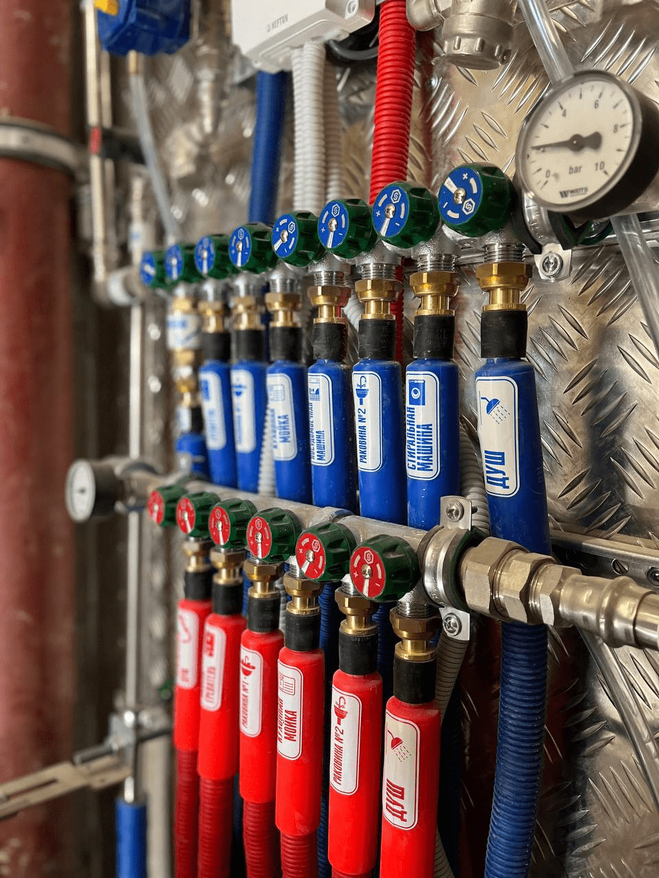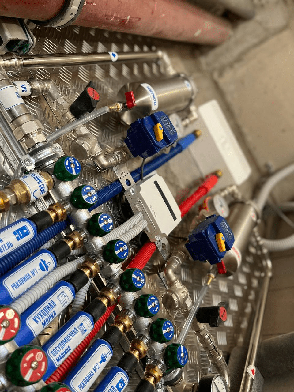 кухне, а также произведём замену кранов, и сделаем подводку труб для холодной и горячей воды.